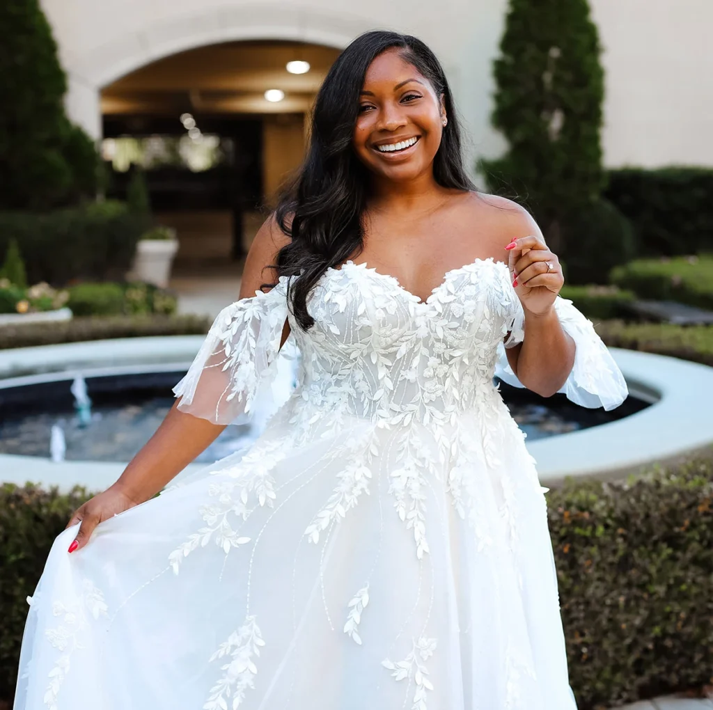 Please note that only one of each dress is available (unless listed otherwise). Once this discounted wedding dress is sold, it is no longer available, so if you love it, then don’t miss out on your dream wedding dress at this discounted price! Our designer wedding dress outlet has a collection of beautiful, ready-to-buy, designer off-the-peg wedding dresses, available in our beautiful Birmingham bridal boutique, by appointment only, so book now!